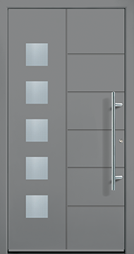Wählen sie zwischen 7 beidseitig flügel-überdeckenden Aluminium Designtüren, 7 trendstarken RAL Farben und einer Mastercarré oder Satinato Verglasung...